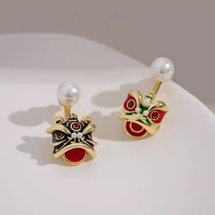 Niche design lion head earrings, high-end earrings suitable for the New Year, new Chinese style national style earrings, new retro style |
