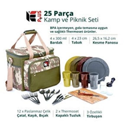 Kulsan Kplus Camouflage Patterned 25 Pieces 4 Person Camping Picnic Bag Set |