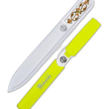 Set of 2 Glass Nail Files with Swarovski Crystals and Yellow Hand Painted Design. |