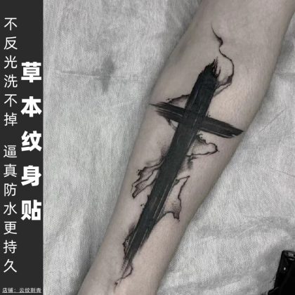 [Two Pieces] Juice Herbal Tattoo Sticker Flower Arm Semi-Permanent Ink Style Cross is Non-reflective and cannot be washed off |