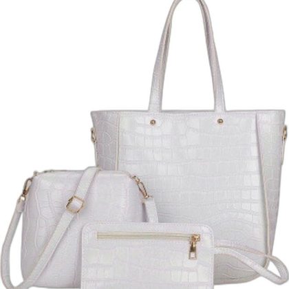 White One-Shoulder Handbag with Embossed Design (3-Piece) |