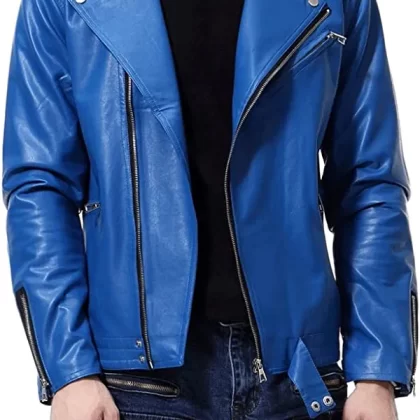 Men's Leather Motorcycle Jacket in Trendy Style and Large Size (Color: Hortel, Size: XL) |