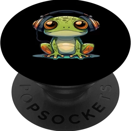 PopSockets Swappable PopGrip - Cute Frog with Headphones Design for Kids' Music. |