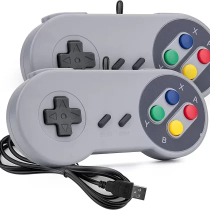2-Pack Grey Rii Game Controllers - USB Retro SNES Style Joysticks for PC, Raspberry Pi, Windows, MAC, Linux, and Android. |