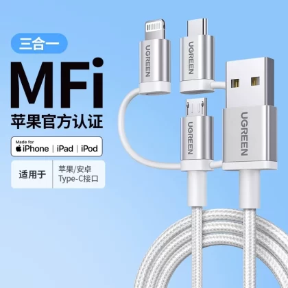 Green Alliance three-in-one data cable MFI certified one-to-three power bank cable suitable for Apple 15 iPhone 14 Huawei Honor Xiaomi mobile phone Android type C head car multi-function fast charging cable |