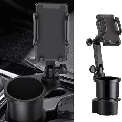 Car Cup Holder with Phone Mount, 360° Rotation, Compatible with iPhone, Samsung and All Smartphones (Black) |