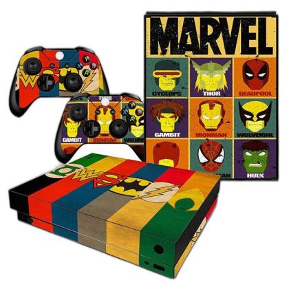 Marvel-themed decal sticker set for Xbox One X console and controller. |