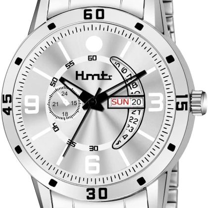 Men's silver analog watch with day and date display - HMTr-7088-SILVER. |