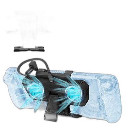 USB-C Powered RGB Cooling Fan Dock with Stand and Adjustable Speed for Steam Deck and Nintendo Switch OLED, featuring Blue RGB Lighting. |