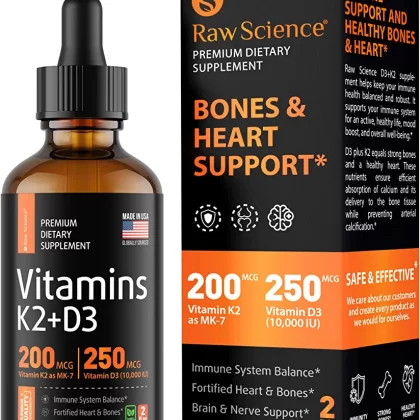 Liquid Vitamin D3 + K2 Supplement with Coconut Oil for Bone Density, Heart Support, and Immune Wellness - 2 fl oz. Made in USA. |