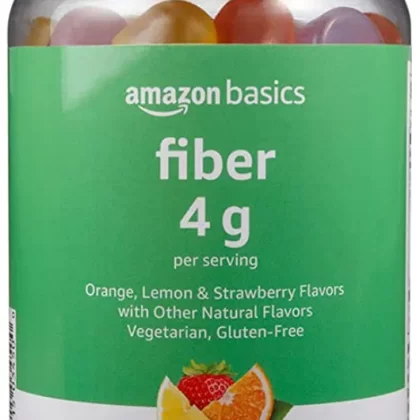 Amazon Basics Fiber Gummies - Promotes Digestive Health, Regularity Support, Orange, Lemon & Strawberry Flavors, 90 Gummies (2 Gummies per Serving) |