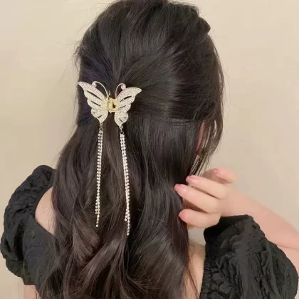 Butterfly tassel wind chime metal hollow headdress hair clip |