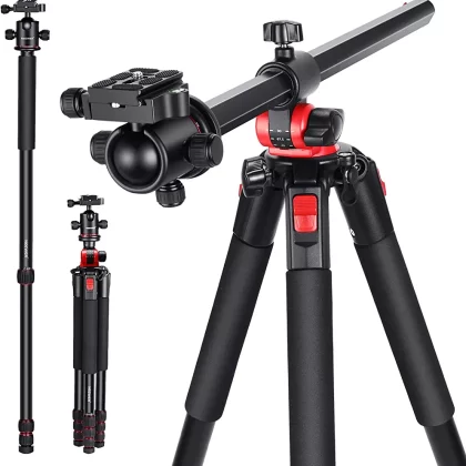 72" Aluminum Camera Tripod with Ball Head, Monopod, Arca Type QR Plate, and Bag. Supports DSLR Camera, Video Camcorder, Max Load: 33lb. Includes Horizontal Tripod Overhead Camera Mount. |