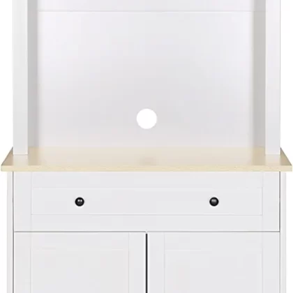 White Kitchen Storage Cabinet with Glass Doors and Adjustable Shelves. Upgraded Metal Hinges. |