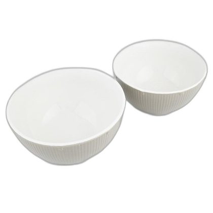 Set of 2 Stone Ware Bowls in White and Grey. |