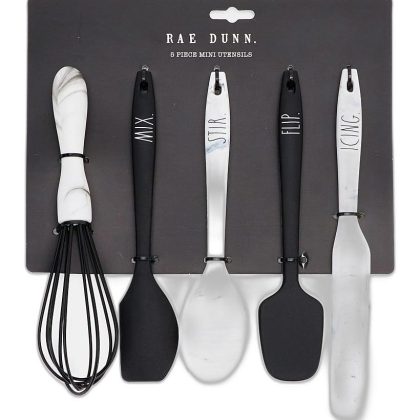 White Marble/Black 5-Piece Mini Utensil Set. |