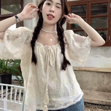 Jacquard embroidered short-sleeved design with loose lace lace |