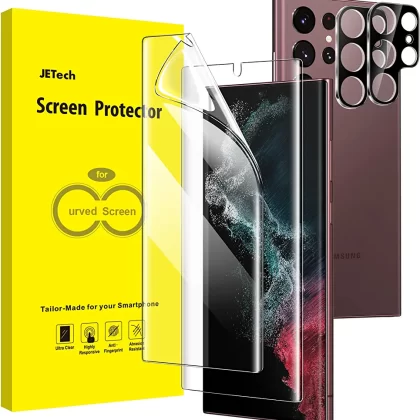 Samsung Galaxy S22 Ultra 5G Screen Protector with Camera Lens Protector, TPU Film, Fingerprint ID Compatible, HD Clear, Easy Installation, 2-Pack. |