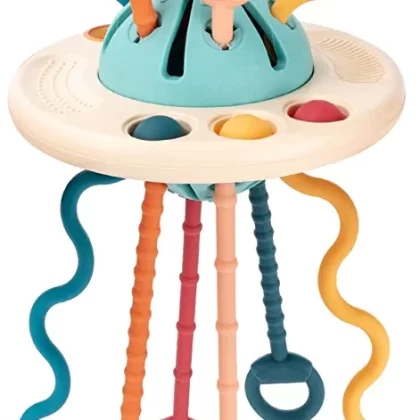 Montessori-inspired silicone toy for babies aged 6-18 months, designed to develop fine motor skills and provide multi-sensory stimulation. Perfect as a travel toy or birthday gift for toddlers. |