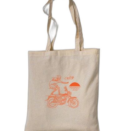 Orange Skull Rider Cotton Canvas Tote Bag. |