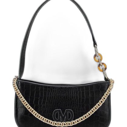 Black Shoulder Bag with Textured Leather and Structured Design. |