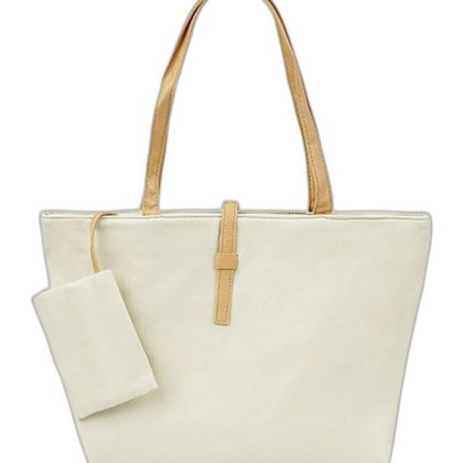White Shopper/Tote with Pouch and Stitched Detail. |