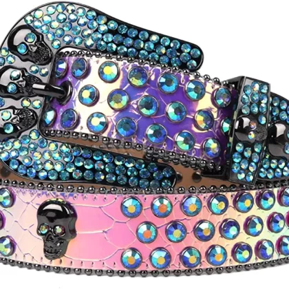 Purple Skeleton Rhinestone Belt with Crystal Inlay for Women and Men - Luxury Tablet Belt Decoration in Size 48 inch. |