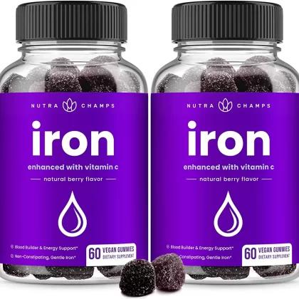 Iron Gummies with Vitamin C for Women, Men & Kids | 120 Blood Builder Supplement Gummies | Vegan & Energy Boosting (2 Pack) |