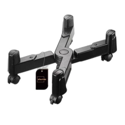 Black CPU holder with adjustable width and 4 caster wheels for easy mobility, suitable for most computer cases under the desk. |