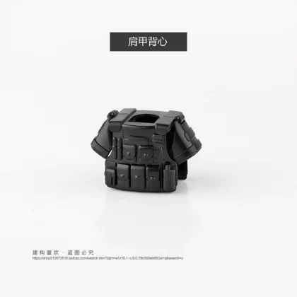Small-sized minifigure building blocks, equipment, armor accessories, tactical vest with shoulder armor, heavy-duty body armor assembly model |