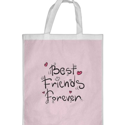 Pink and white shopping bag with "Best Friends For Ever" print. |