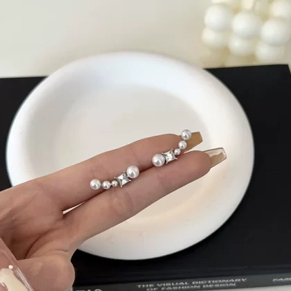 French light luxury personalized pearl zircon earrings silver needle double wear niche design earrings versatile internet celebrity earrings |