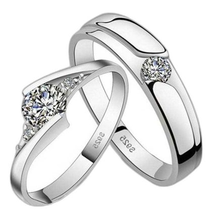 Set of two rings plated with 925 sterling silver for couples. |