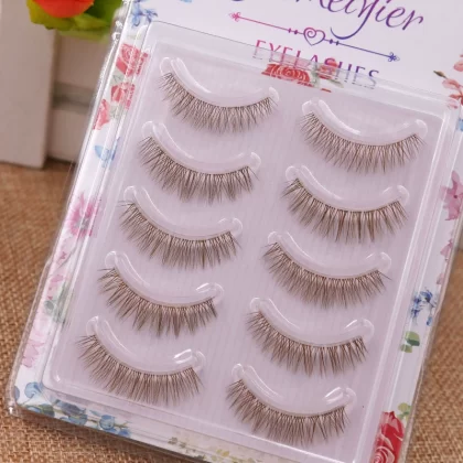 Brown false eyelashes, naturally thick, crossed, short, transparent, thin stems, caramel color, life makeup for big eyes, sharpened false eyelashes |