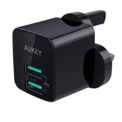 Black Mini Travel Charger with Dual AiPower Ports. |