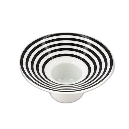 Striped Tealight Holder in White and Black, 5 cm height and 12.5 cm diameter. |