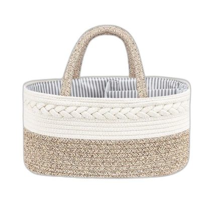 Portable and Foldable Cotton Diaper Caddy for Newborns, Nursery and Toy Storage, Large Ivory Basket. |