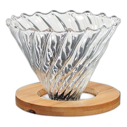 Clear glass coffee dripper with wooden base - V60, 500ml. |