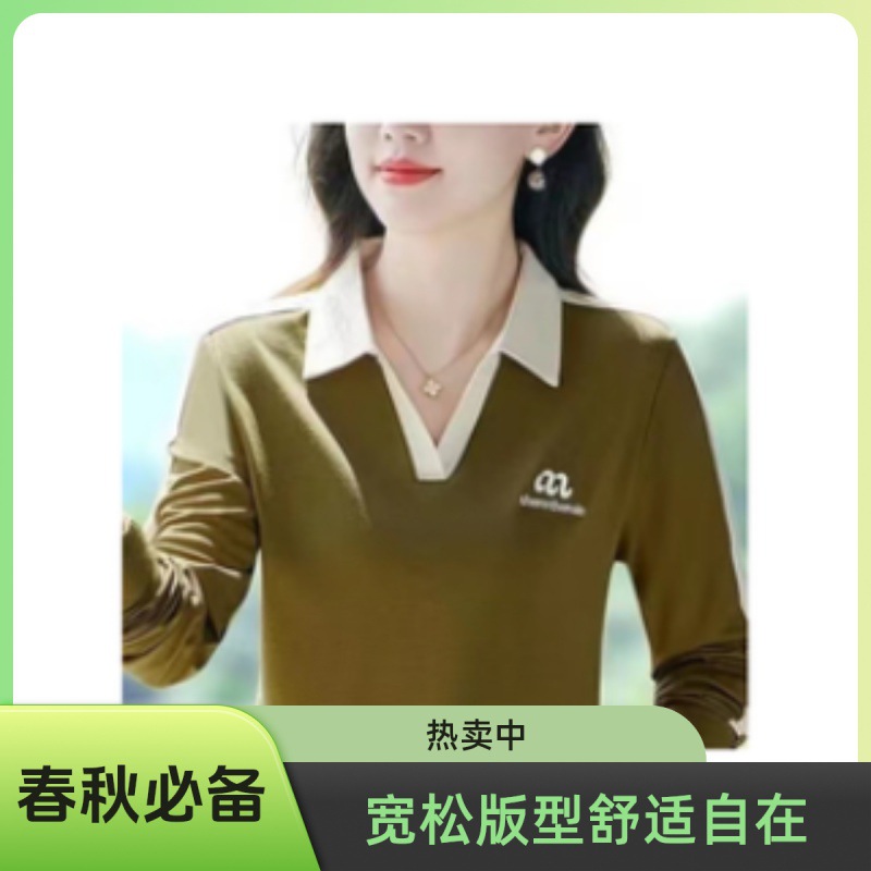 Long-sleeved T-shirt women’s lapel spring and autumn 2024 new middle-aged mother top women’s slim base shirt polo collar