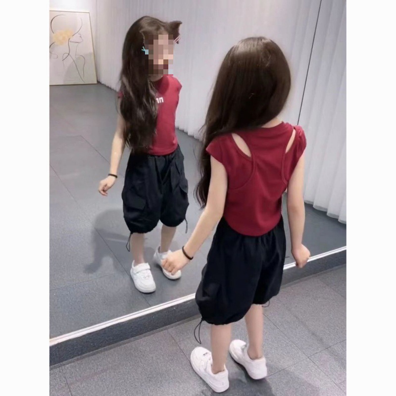Explosive 2024 Middle and Large Children’s Cordwork Pants Backless Western Style Shorts Short Sleeve Summer Children’s Girls’ Sports