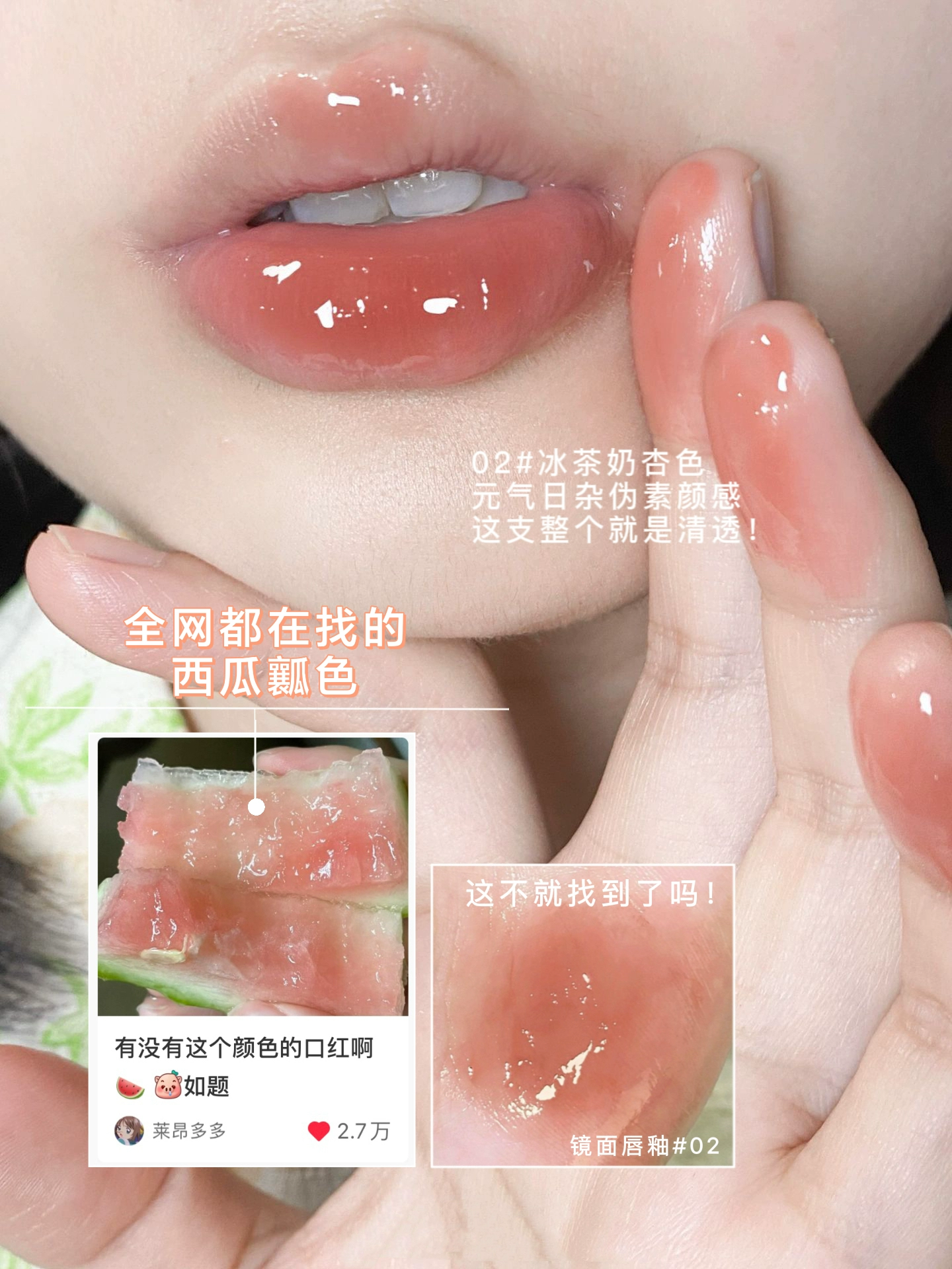 Buy for good looks! Watermelon Dipper Lip Color Is Too Hot Iced Tea Mirror Lip Glaze Glass Transparent Watery Lip Gloss