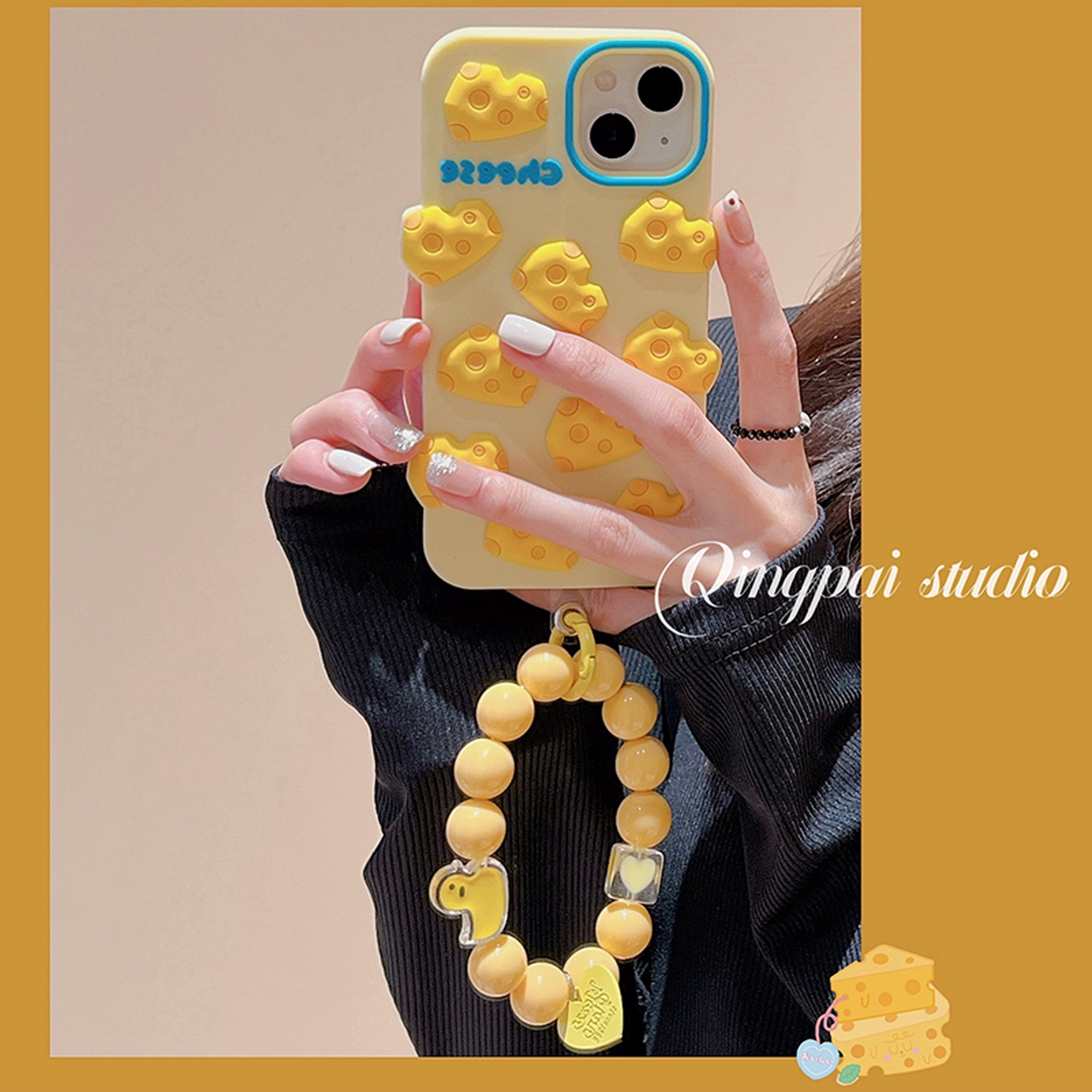 Cheese yellow cheese suitable for iphone13promax silicone 16 apple 12 mobile phone case new 11 women with chain all-inclusive 14plus anti-fall 15pro Internet celebrity 12pro creative personality soft shell