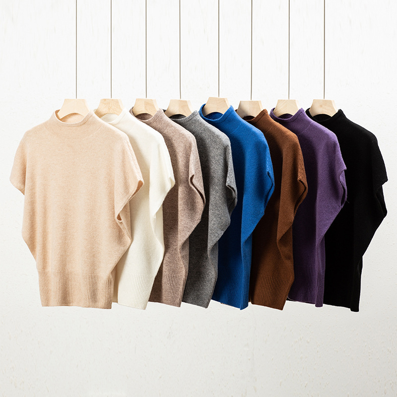 Half-turtleneck waistcoat short-sleeved sweater women’s new knitted mid-collar bottoming shirt 2024 autumn seamless thin sweater
