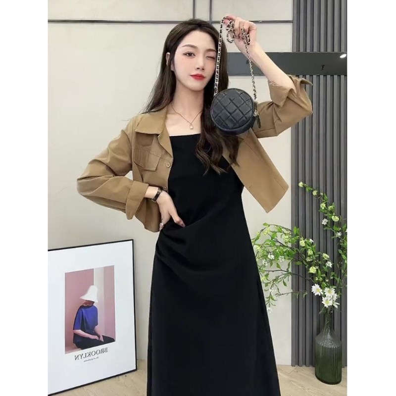 Milk Department Wear Early Spring Short Shirt Jacket Slip Skirt Suit Fashionable Age-reducing Slim Dress Two-piece Set