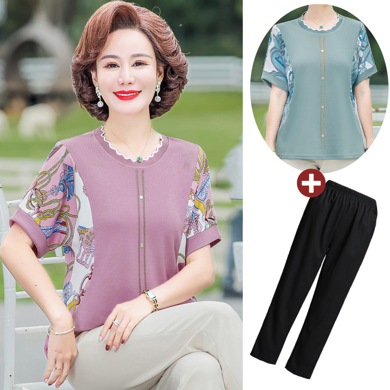Mother’s Summer Dress Ice Silk Short-sleeved T-shirt Small Shirt 2024 New Arrival Middle-aged Women’s Stylish Fashion Top Middle-aged and Elderly Sweatshirt