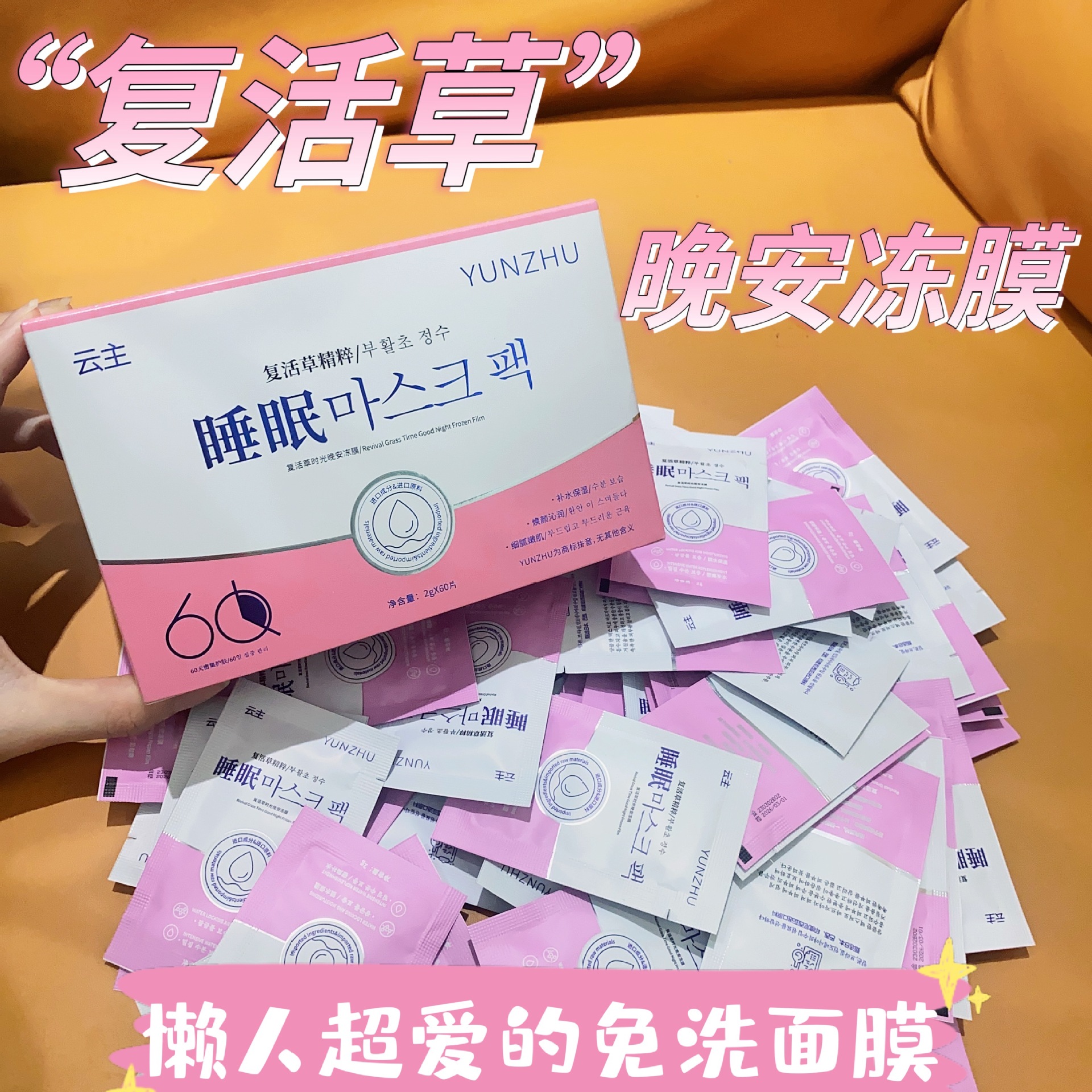 Hydrating Moisturizing Softening Skin Night Frozen Film Brightening Skin Color Repair Sleep Mask Wash-Free Resurrection Grass Mask