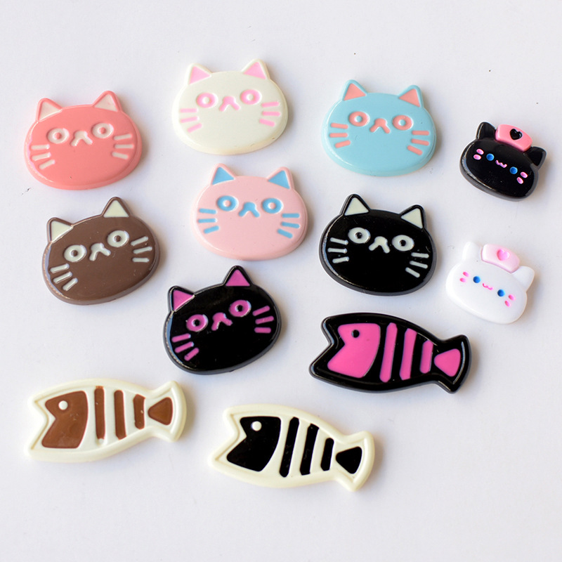 ins kitten eating fish accessories hair accessories mobile phone shell shoe flower diy accessories factory wholesale pj1252