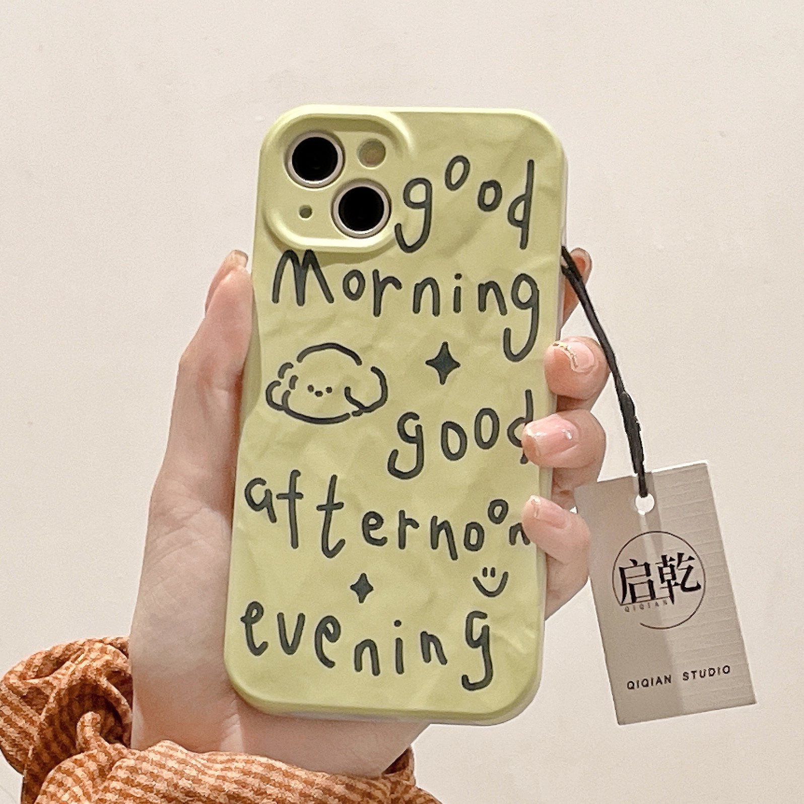 Qiqian niche English dog iPhone14 mobile phone case suitable for Apple 13promax film hard shell 12/11 two-in-one pleated green cute cartoon creative Internet celebrity new female summer