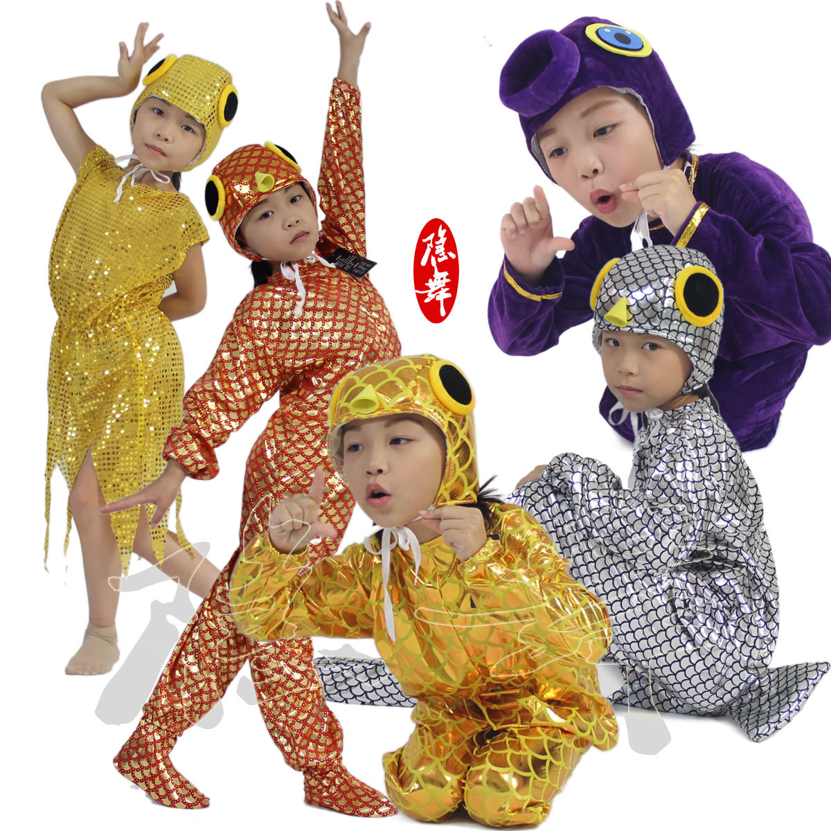 Promotional children’s dance performance clothing adult children’s parent-child aquatic animal gold and silver red and yellow carp style performance clothing