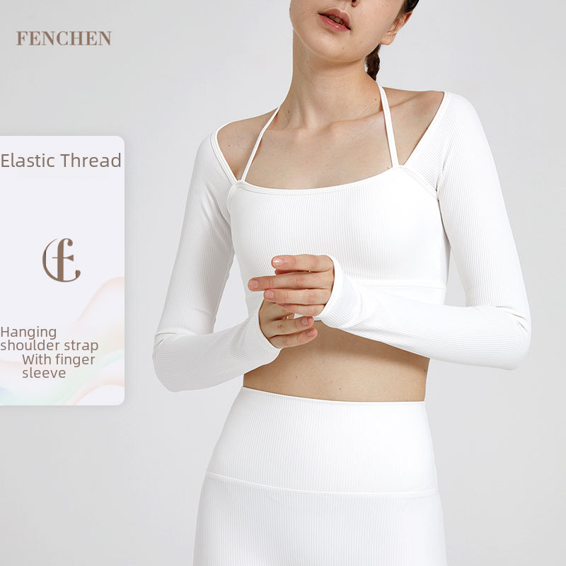 Cross-border Hot Autumn New Hanging Neck Long Sleeve Thread Fitness Wear Slim-fit Slimming Long Sleeve Yoga Wear Sports Leisure